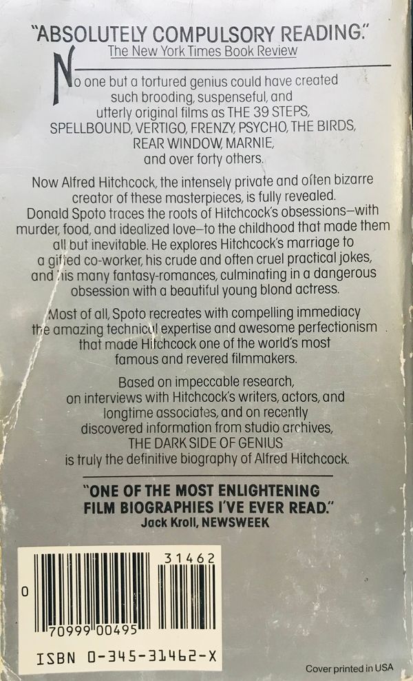 The Dark Side of Genius: The Life of the Alfred Hitchcock by Donald Spoto
